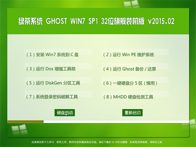 绿茶系统 Ghost Win7 SP1 x86 旗舰装机版 2015.02