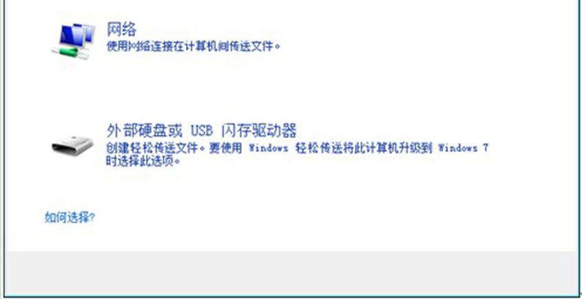 3、在弹出的如何将项目传送到新计算机的选项中,单击“外部硬盘或USB闪存驱动器”选项。